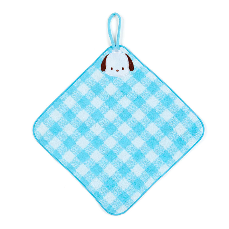ブルーのチェックがさわやかな「ポチャッコ」のハンドタオル。