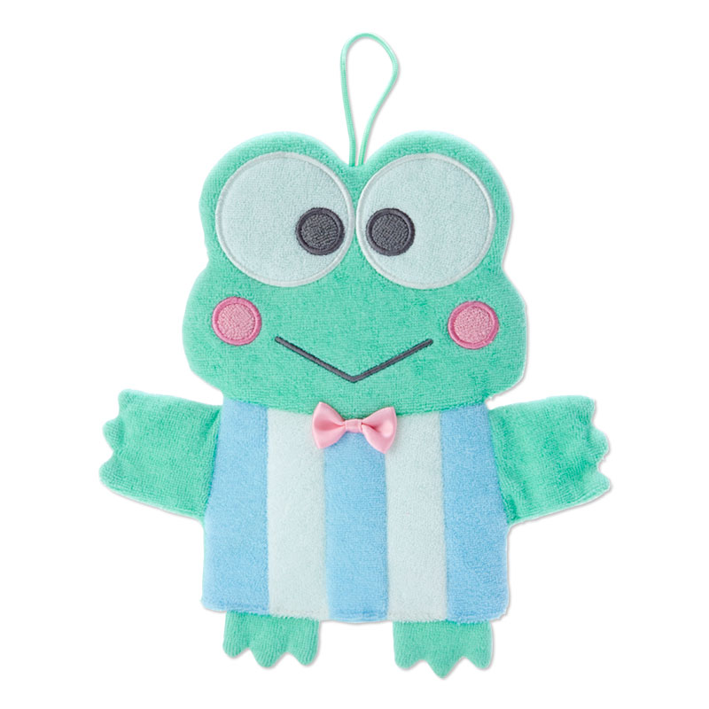 「けろけろけろっぴ」のワッペンと、グリーンのループが付いています。