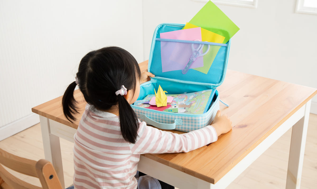 お絵かき道具やおもちゃなどを収納できる、使いやすいお片付けケース!