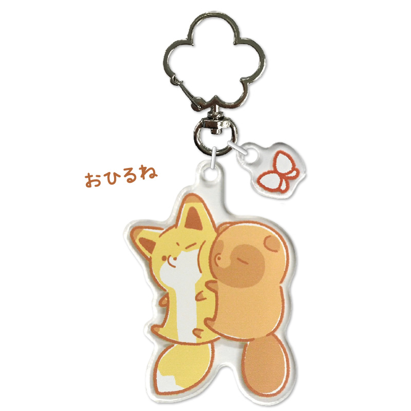 『タヌキとキツネ』の「おひるね」シーンが描かれたアクリルキーホルダー。