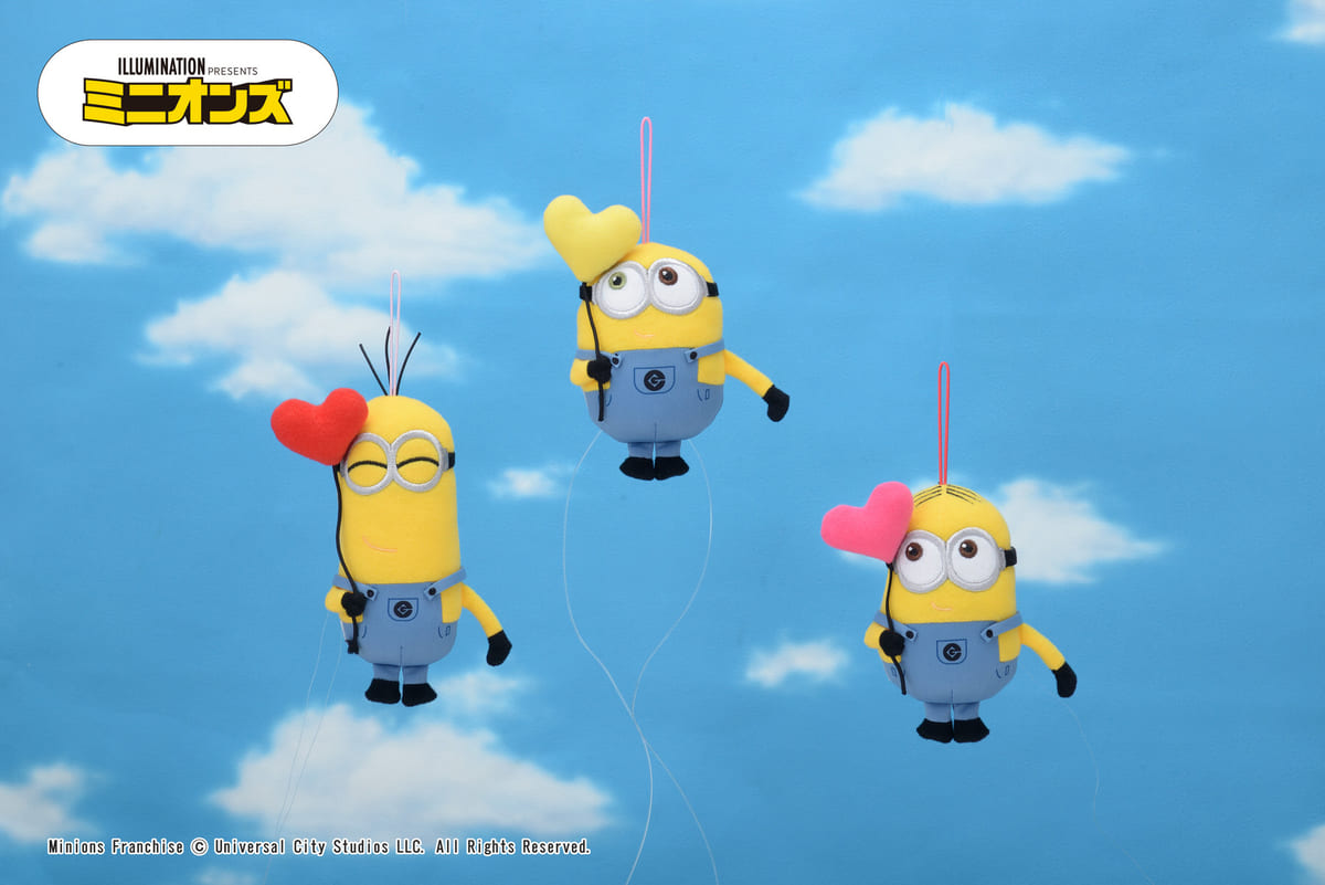 バナナやハートを手にした、キュートな「ミニオン」たち。