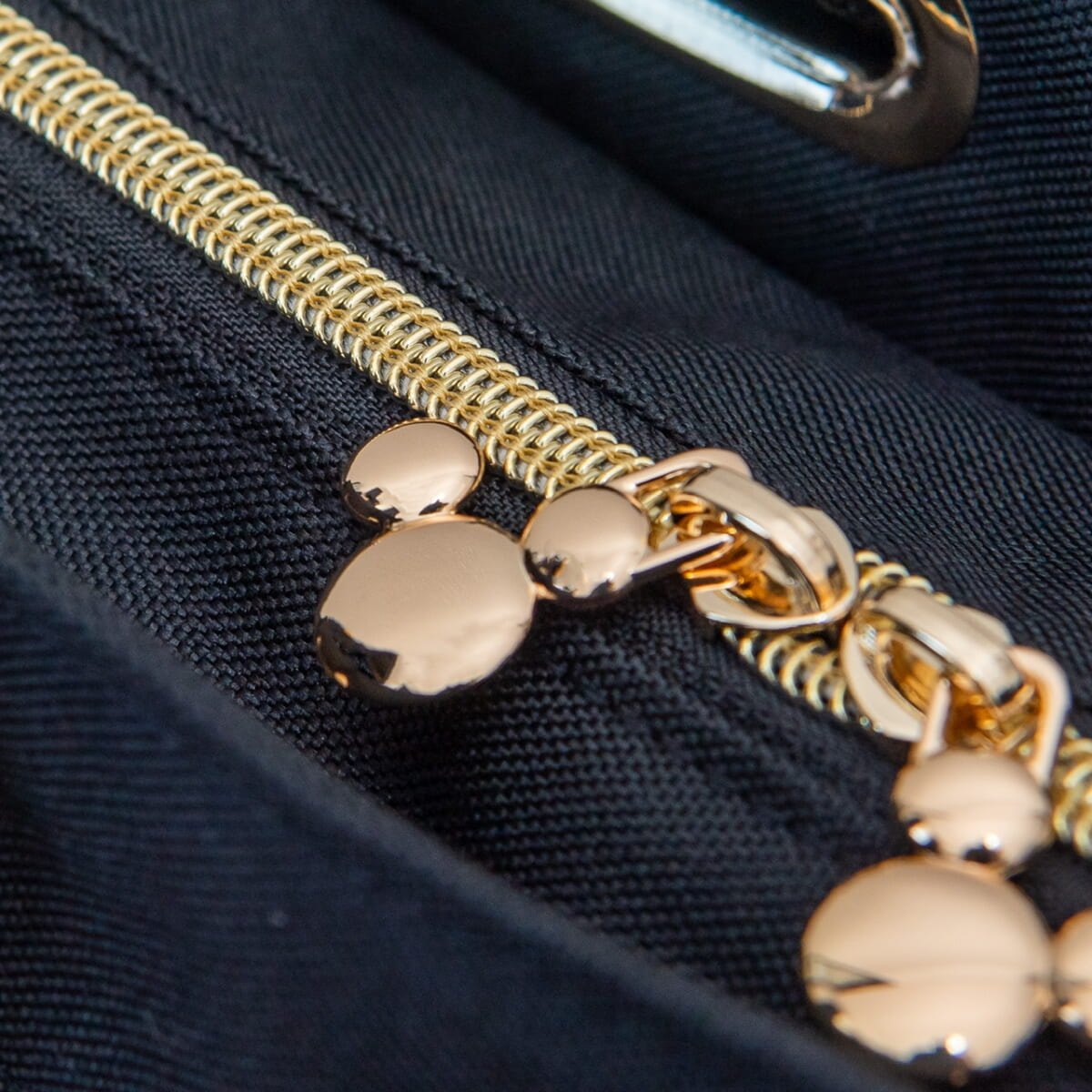 ファスナーの引き手はミッキーシェイプになっています。