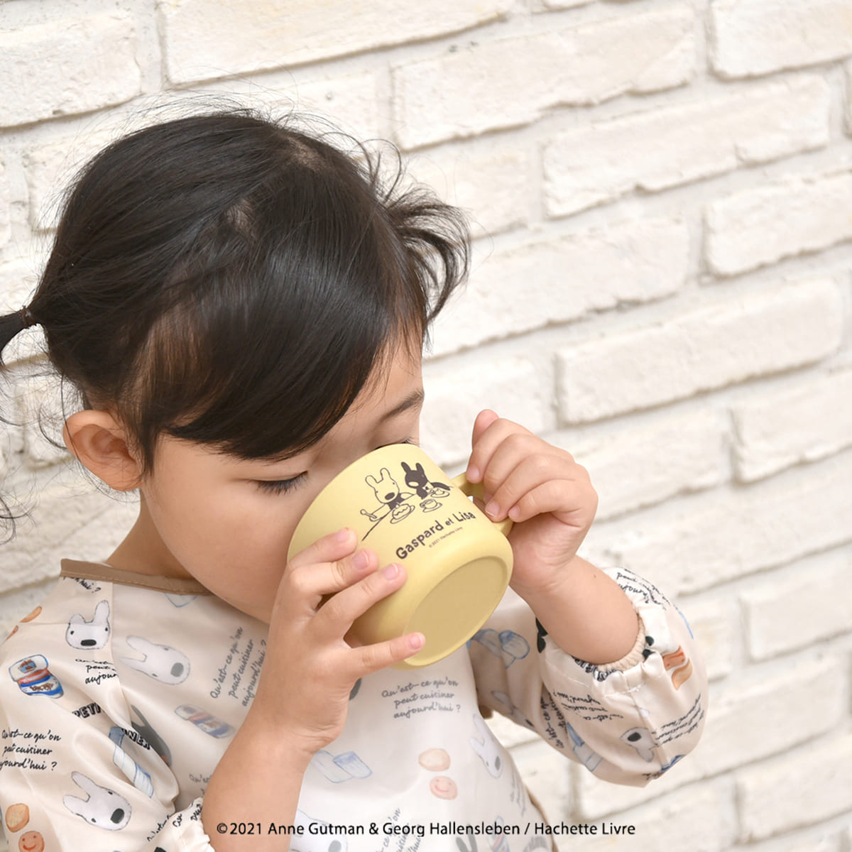 お子さんも持ちやすいサイズで展開される「コップ」には、ティータイムを楽しむ「リサ」と「ガスパール」のアートをプリント。