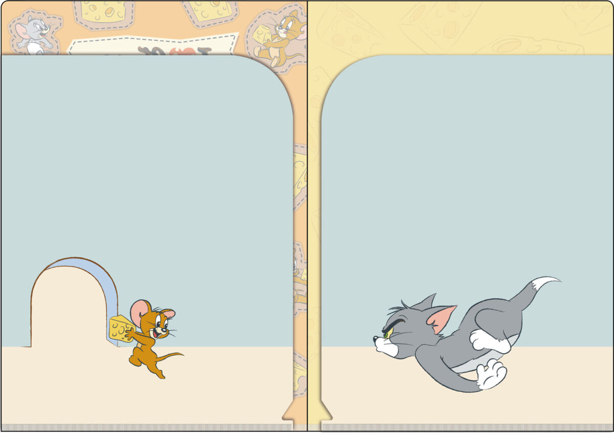 本文見開き右側のヘッダーには、「トム」と「ジェリー」の追いかけっこの様子をデザイン。