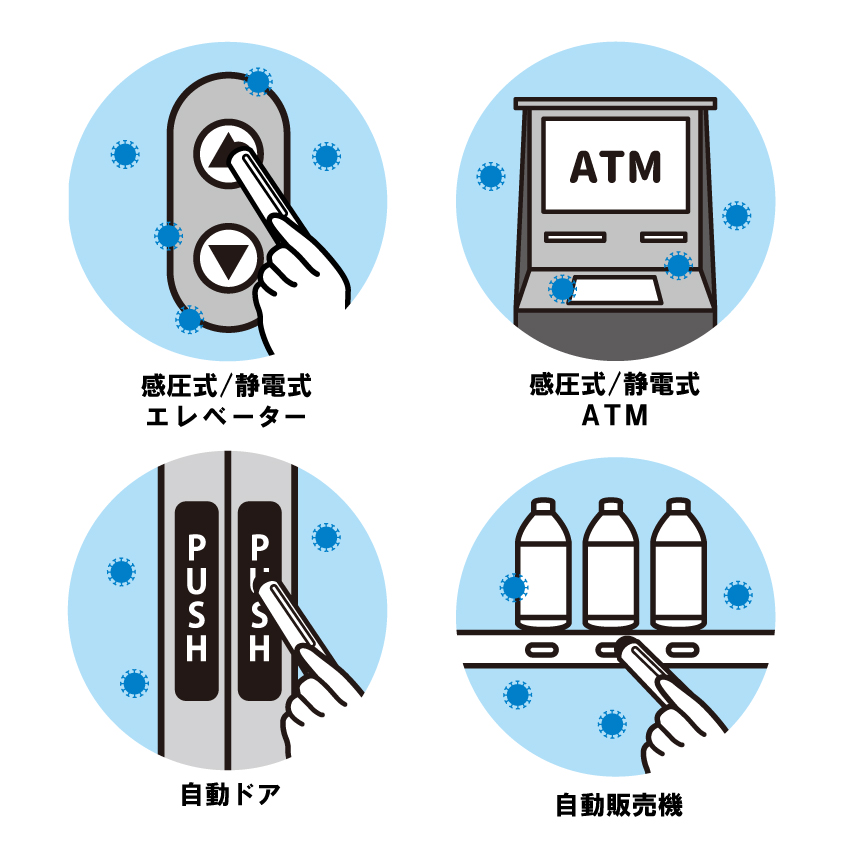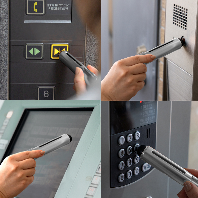 素手のかわりに、エレベーターのボタンや、ATMのタッチパネルなど操作したり、自動ドアのボタンを押したりできます。