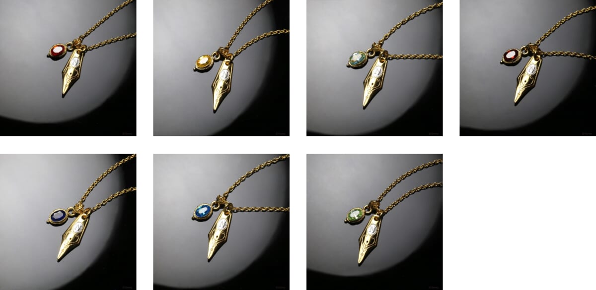 魔法石がはめ込まれた万年筆「マジカルペン」をモチーフにした、ユニセックスに愛用できるネックレスシリーズ。