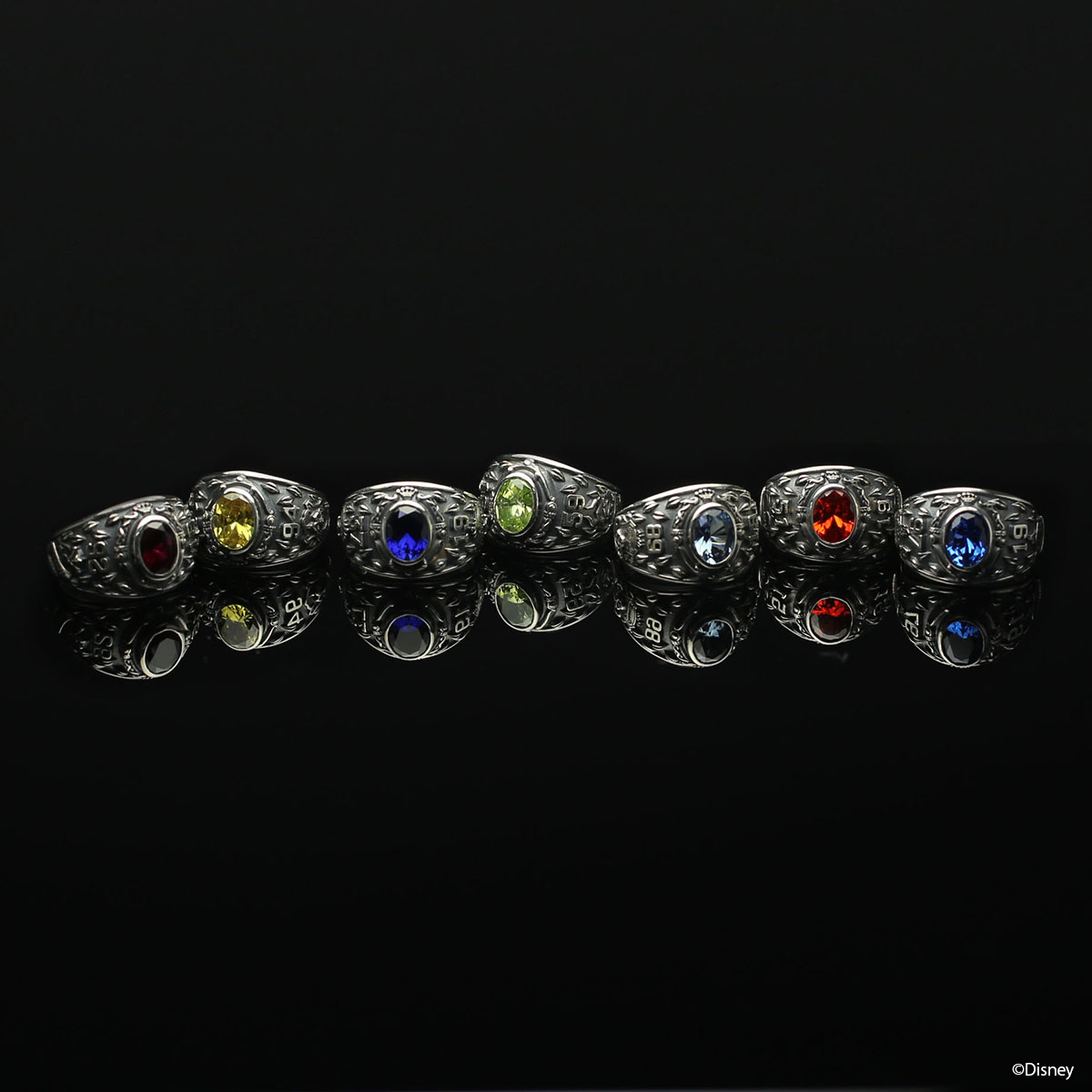 センターに「ナイトレイブンカレッジ」校章でキービジュアル【鏡】のフレームがベゼルのデザインにレイアウトされた「カレッジリング」