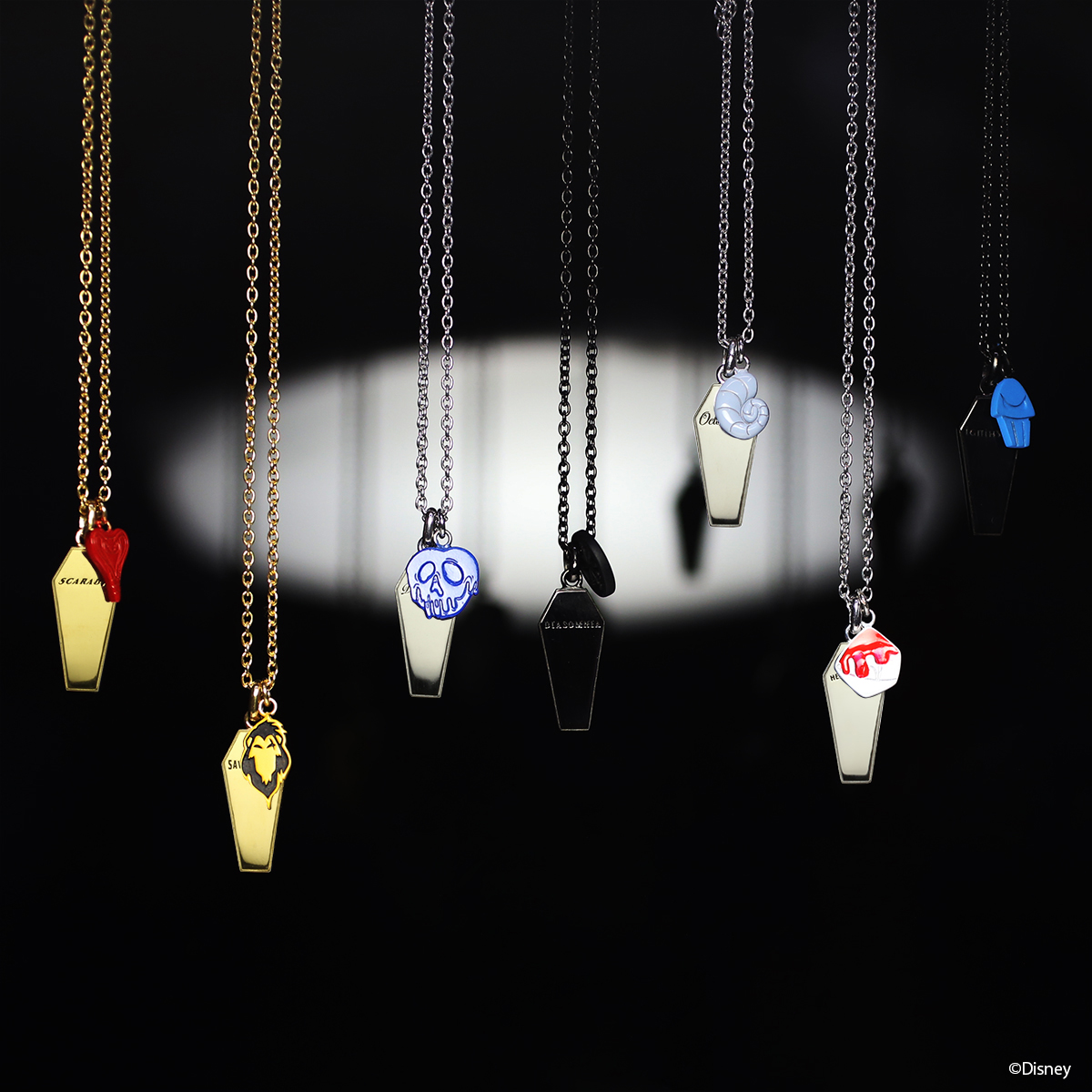キービジュアルのモチーフである【棺桶】に寮の名前を刻印し、象徴的なモチーフを再現した「チャームネックレス」や