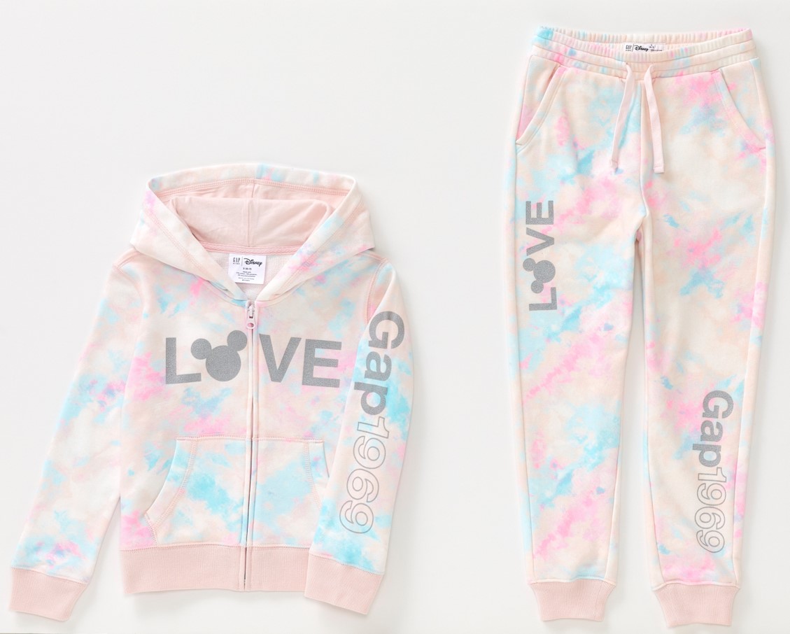 Gapロゴに「ミッキーマウス」のフェイスシルエットをあしらった「ミッキージップアップフーディー」と「ミッキージョガーパンツ」