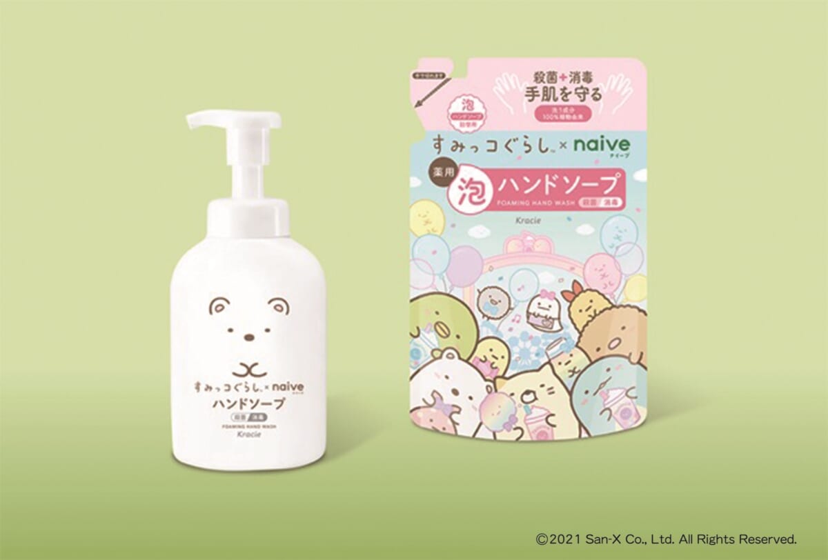 ナイーブの「すみっコぐらし」コラボデザイン「ボディソープ」「泡で出てくるボディソープ」「薬用泡ハンドソープ」は、2021年3月8日(月)より、全国のドラッグストア・スーパーマーケットなどで発売です!