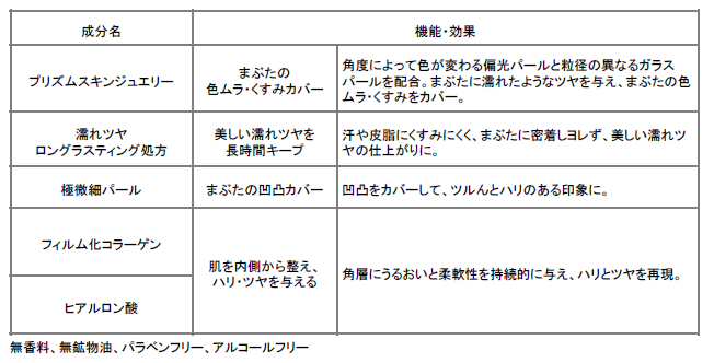 汗や皮脂でくすみにくく、濡れたツヤ感が長時間キープ。