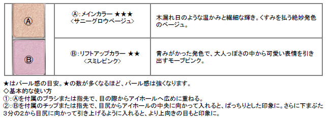 目元に透明感を与え、他のアイカラーと重ねて使えば、ニュアンスチェンジも可能。