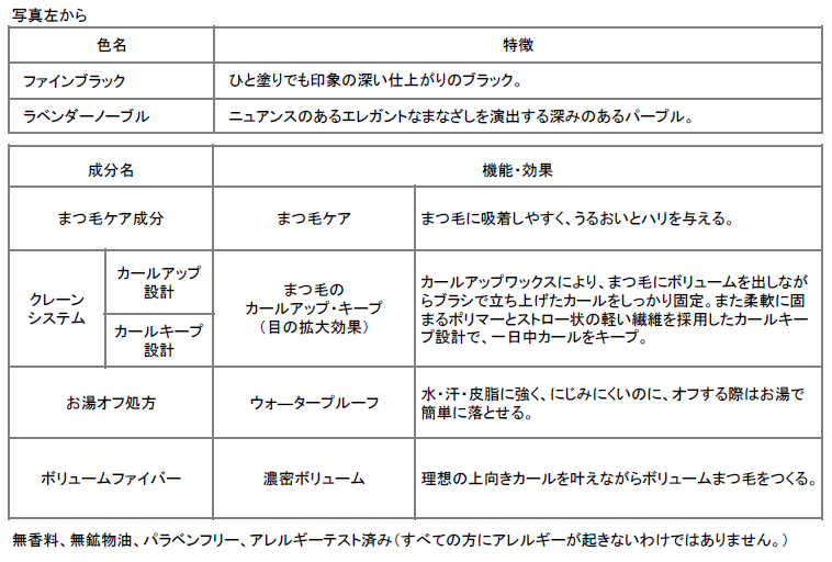 カラーはひと塗りで印象深い仕上がりになる「ファインブラック」に、エレガントな眼差しが演出できる「ラベンダーノーブル」の2色。