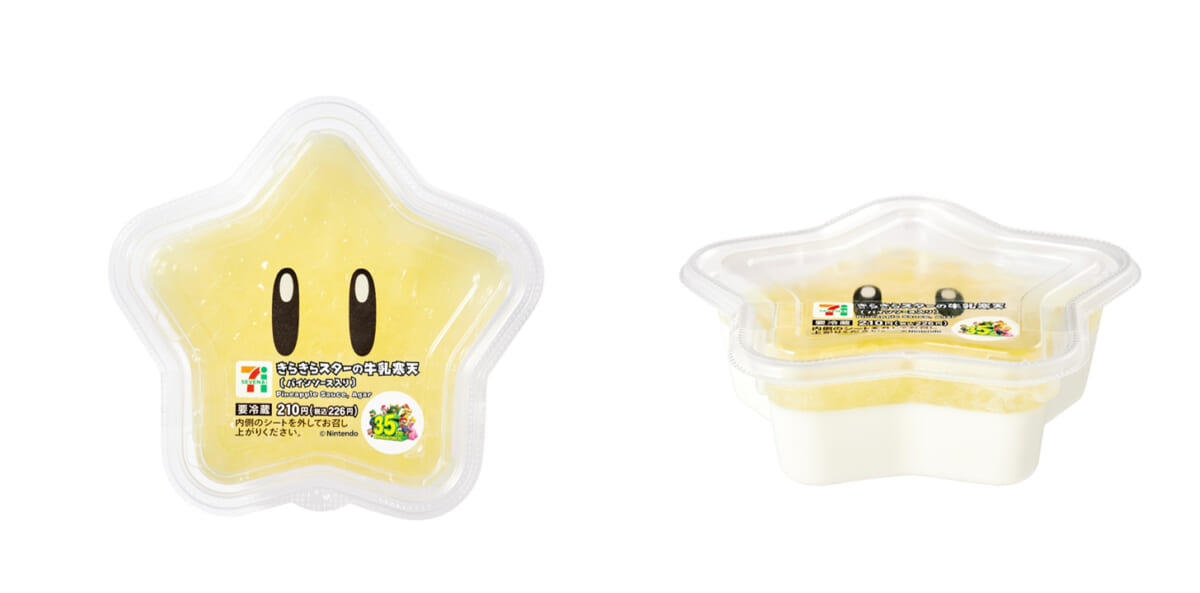 コクのある牛乳寒天に、星をイメージした黄色いパインソースを合わせたスイーツ。