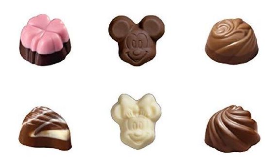 「ミッキーマウス」と「ミニーマウス」型のショコラが入った6種類のチョコレートアソートギフト。