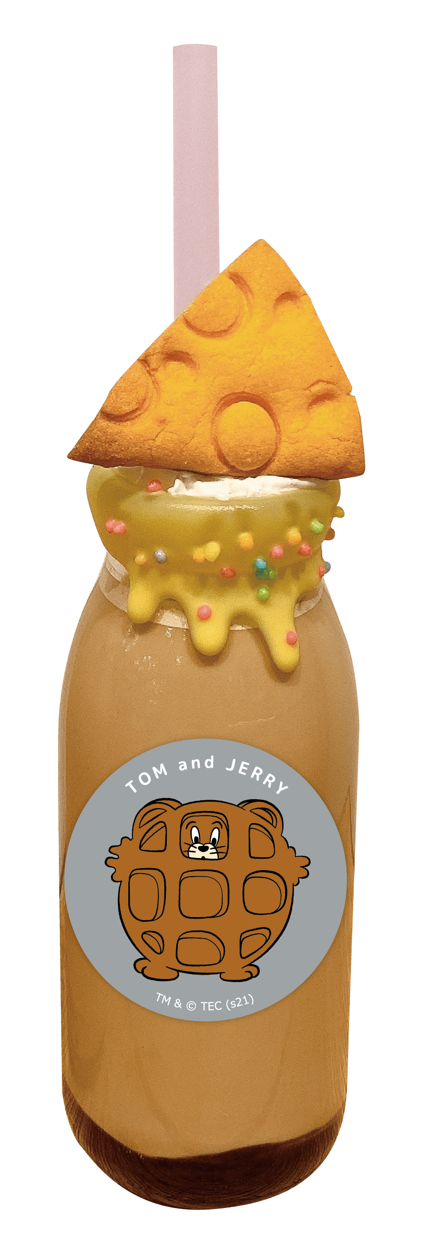 ワッフルに扮する「ジェリー」のユニークな姿がプリントされたドリンクが登場です☆