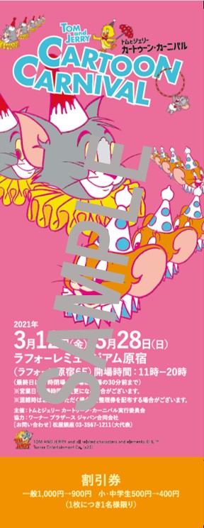 お買ものされた方に先着で、6F ラフォーレミュージアム原宿で開催する「トムとジェリー カートゥーン・カーニバル」の入場割引券がプレゼントされます☆