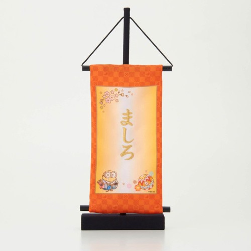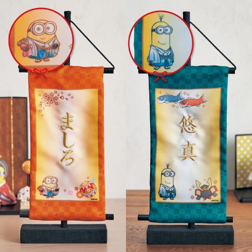 オレンジとグリーンの2色で展開される名前旗には、和服姿でこちらを見つめる「ミニオン」がプリントされています。