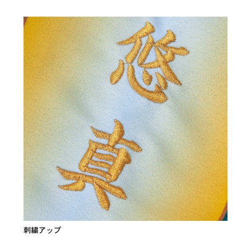 「名前旗」は、風格のある和風の生地にお子さんの名前を金糸で刺繍してお届け。