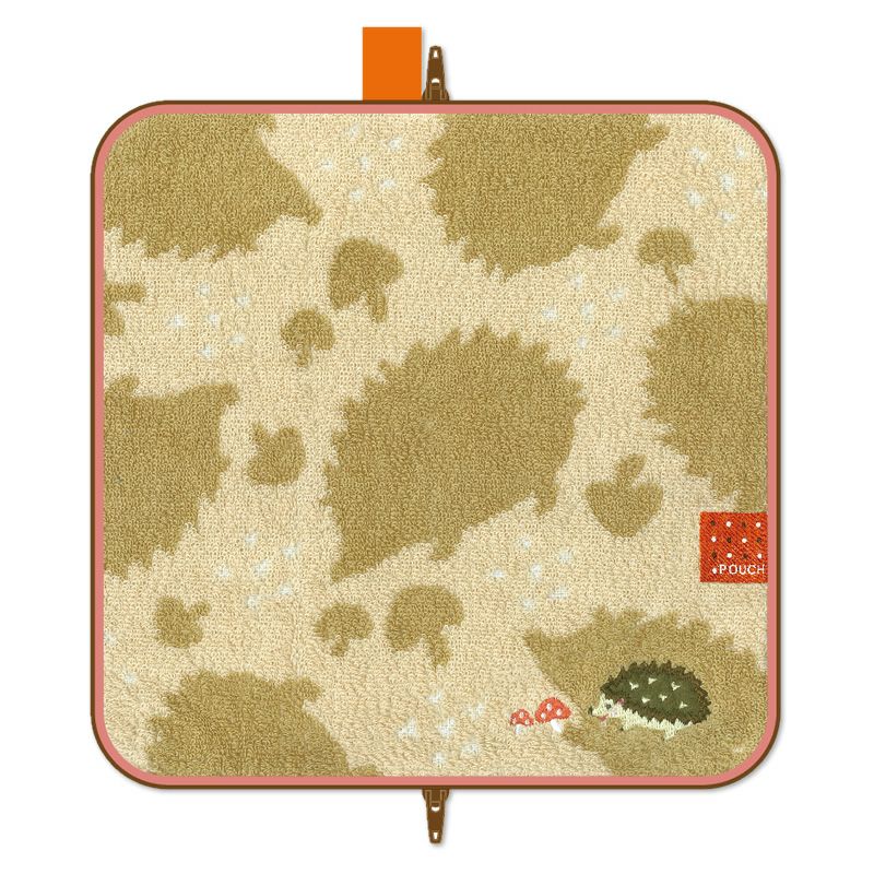 やさしいブラウンの色味と、かわいいハリネズミの刺しゅうにほっこりとした気持ちになれるポーチです。