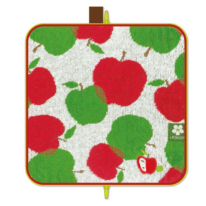 赤いリンゴと青リンゴがカラフルな「リンゴ」柄のどっとポーチです。
