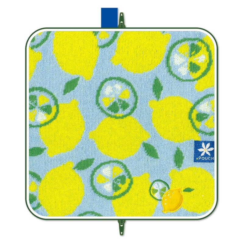 水色にレモン色がさわやかな「レモン」柄のどっとポーチです。