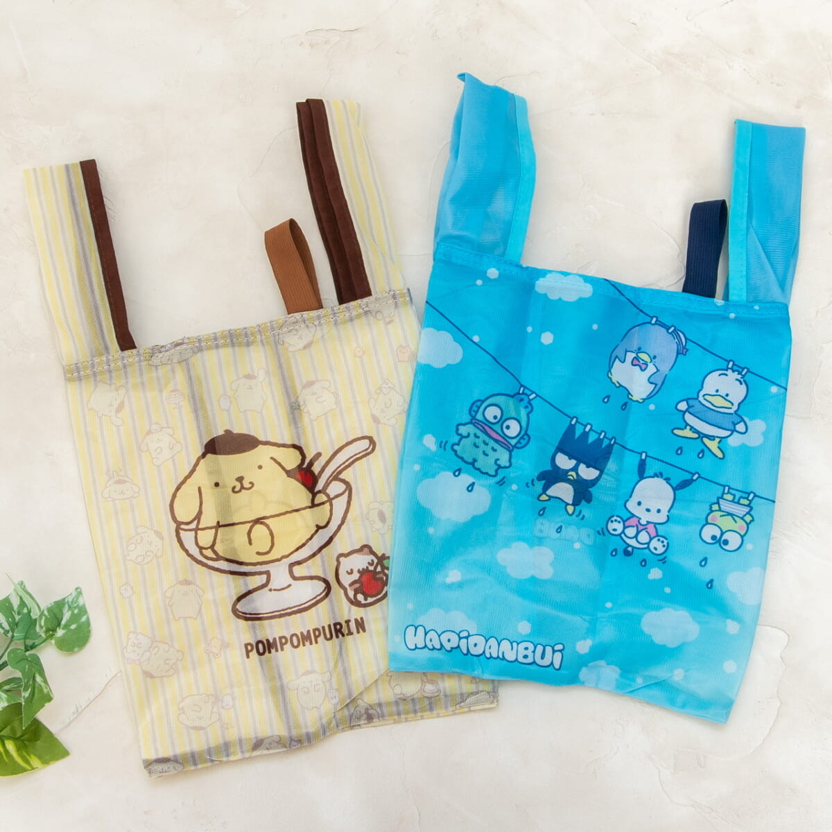 エコバッグの裏面には、「ポムポムプリン」と「マフィン」の後ろ姿があしらわれています。