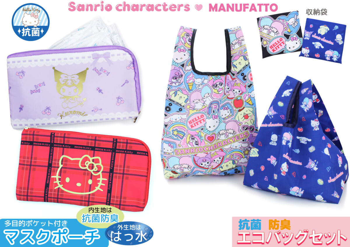 「サンリオキャラクターズ」の「抗菌エコバッグセット」と「抗菌マスクポーチ」は、2021年2月9日(火)より販売開始です。