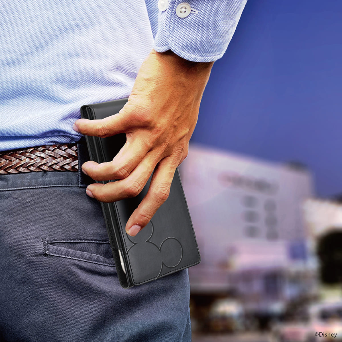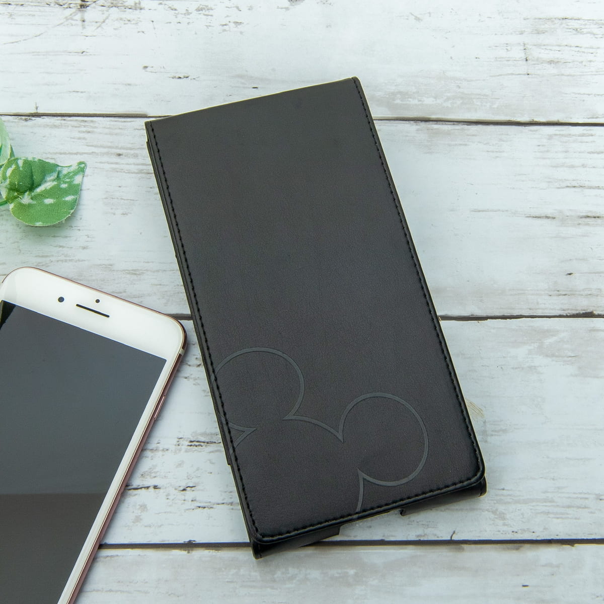 上質なPUレザーを使用し、「ミッキーマウス」のシルエットを使ったデザイン。