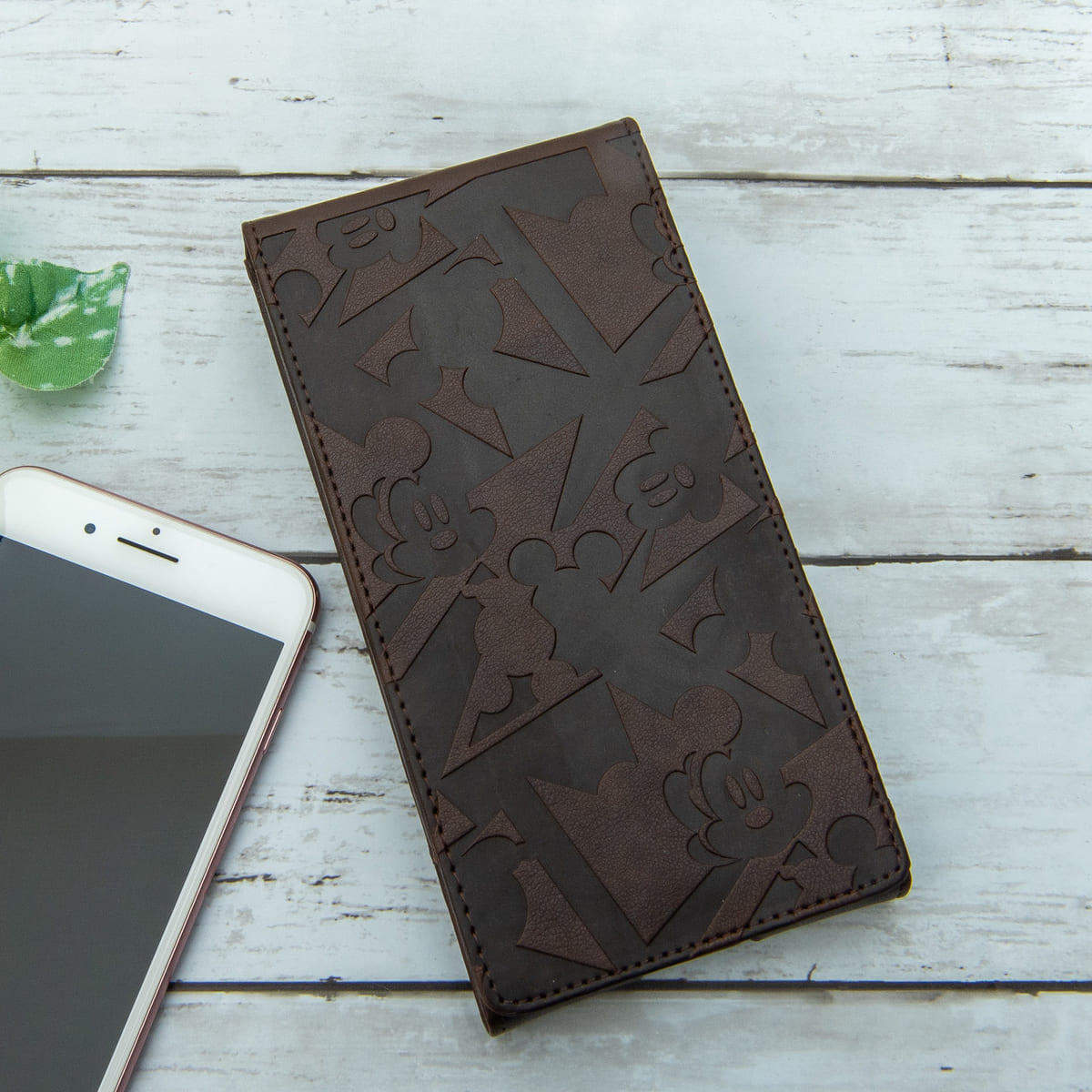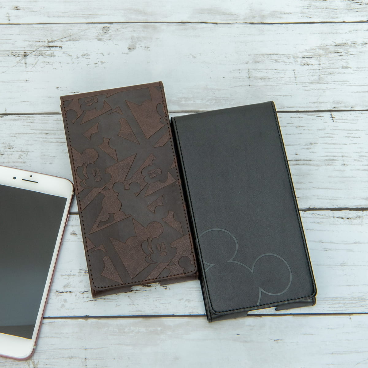 ブラウンは「ミッキーマウス」をモチーフにした、型押しレザーのデザインがおしゃれ!