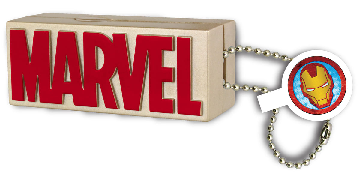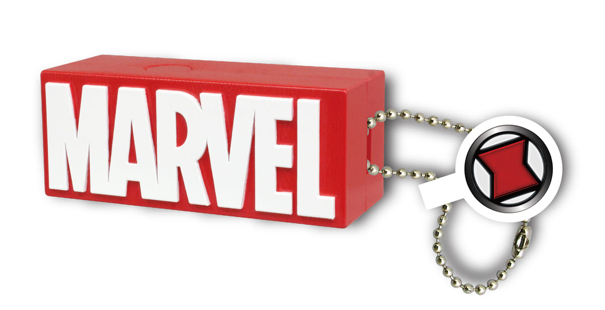 ヒーローたちにまつわるアイコンが投影できる、おしゃれな「MARVEL」ロゴキーホルダー!