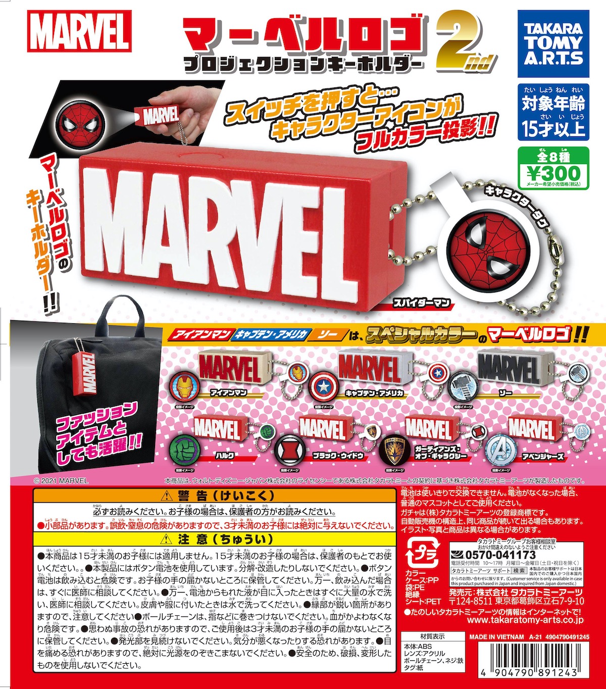 タカラトミーアーツのガチャ「マーベルロゴ プロジェクションキーホルダー2nd」は、2021年2月15日より順次販売開始です。