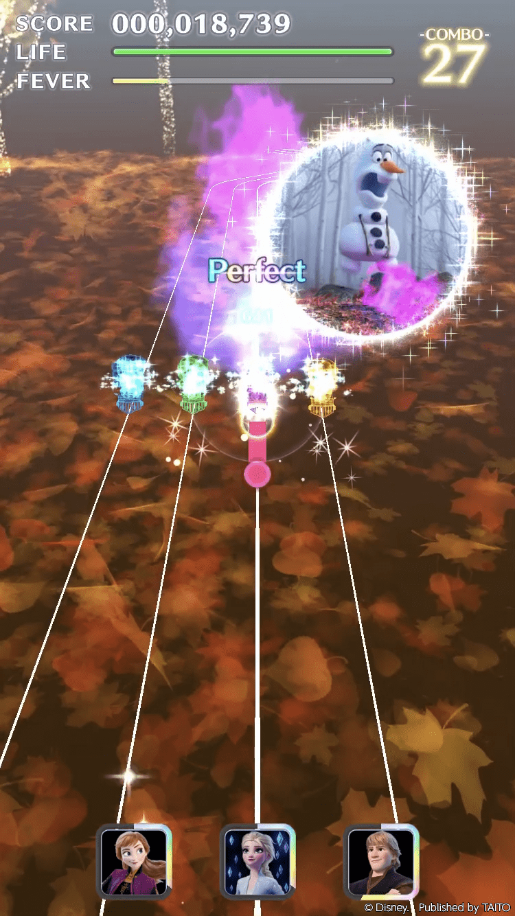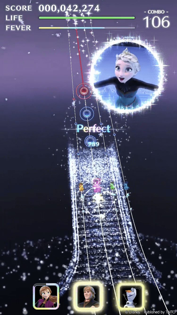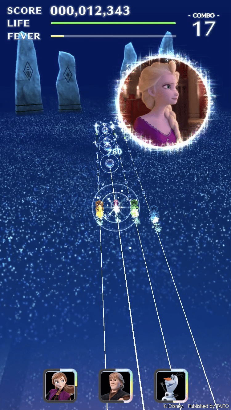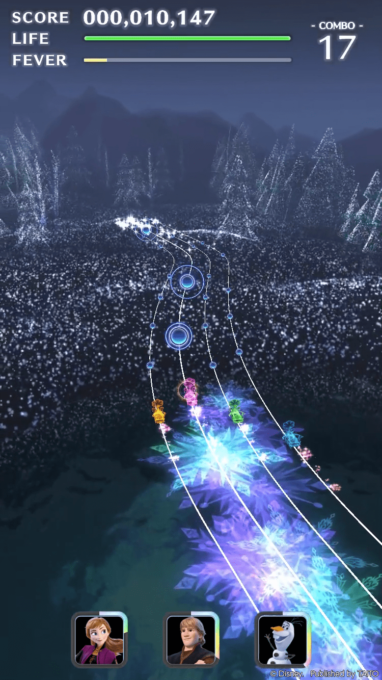 『アナと雪の女王』の世界観が、イルミネーションのような3D空間で楽しめる音楽ゲームアプリ。