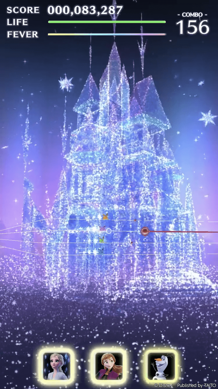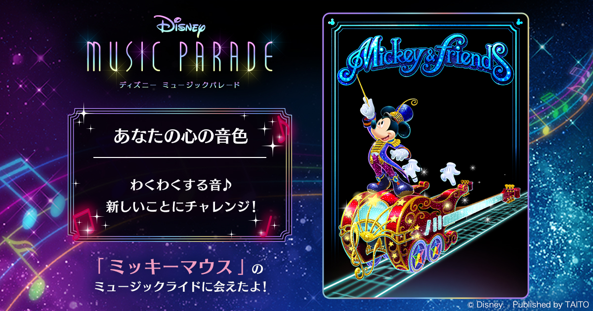 ウォルト・ディズニー・ジャパンの協力のもとタイトーからリリースされている、音楽ゲームアプリ『ディズニー ミュージックパレード』