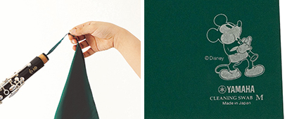 クラリネット専用クリーニングスワブには、クラリネットを演奏する「ミッキーマウス」がワンポイントであしらわれています。