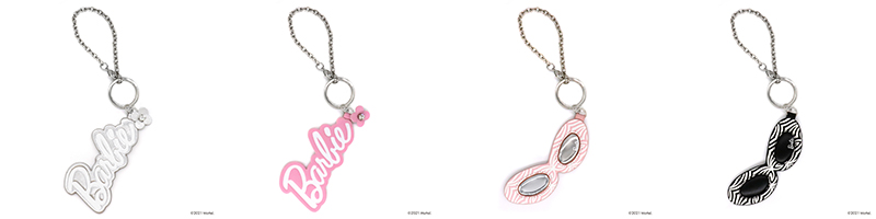 バービーロゴとサングラスモチーフのレザーチャームが、それぞれ2色で展開。