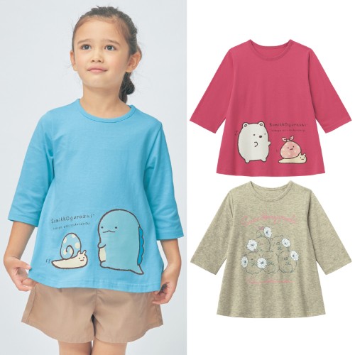 「すみっコぐらし」七分袖チュニックは、綿100%の天竺素材で、優しい肌当たり。