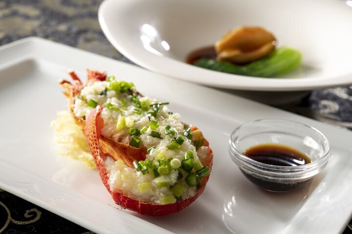 1名様に1皿ずつ「イセエビのにんにく風味蒸し」と「鮑の姿蒸し オイスターソース餡かけ」が付いたごちそうオーダーバイキングです。