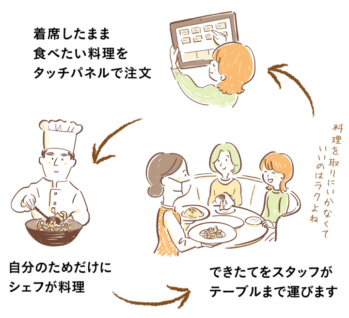 自身で取りに行くビュッフェのような密集を回避し、安心・安全にお食事が楽しめます。
