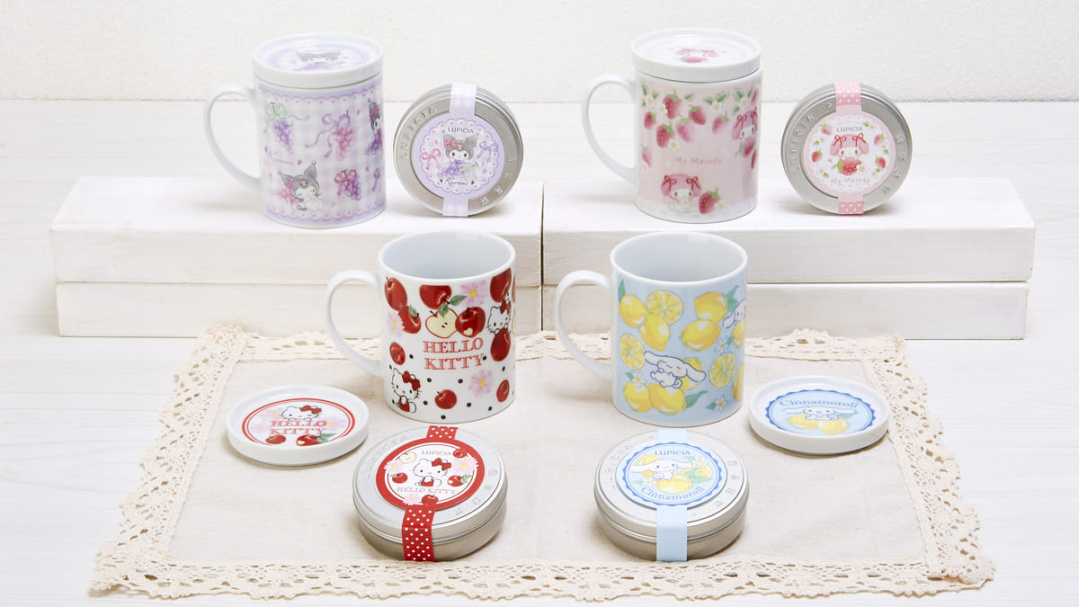 春の訪れを感じられるフレッシュなフルーツの紅茶とティーバッグを置くのに便利な蓋つきマグカップのセットが「ハローキティ」「マイメロディ」「シナモロール」「クロミ」の4キャラクターでラインナップされます。