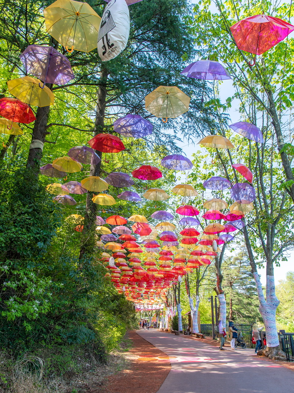約1,200本のカラフルな傘が彩る回廊は約200mに渡り、圧巻の景色で訪れるゲストを包み込みます。