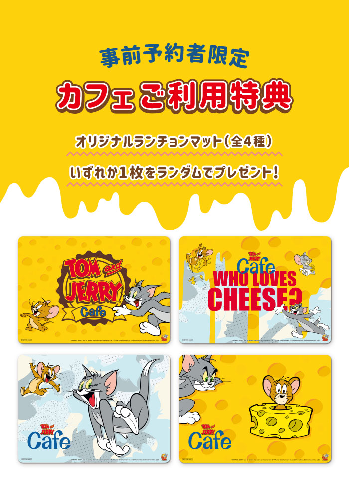 「ジェリー」の好物“チーズ”をたっぷり使用したメニューやキャラクターをイメージしたメニューなどが登場する他、カフェオリジナルグッズや特典なども設けられ、映画『トムとジェリー』を盛り上げます。