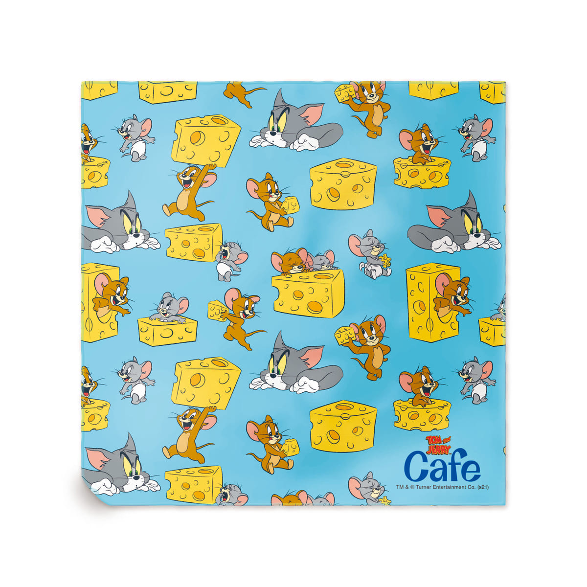 「トム」「ジェリー」「タフィー」そしてチーズの総柄デザインのバンダナハンカチ。