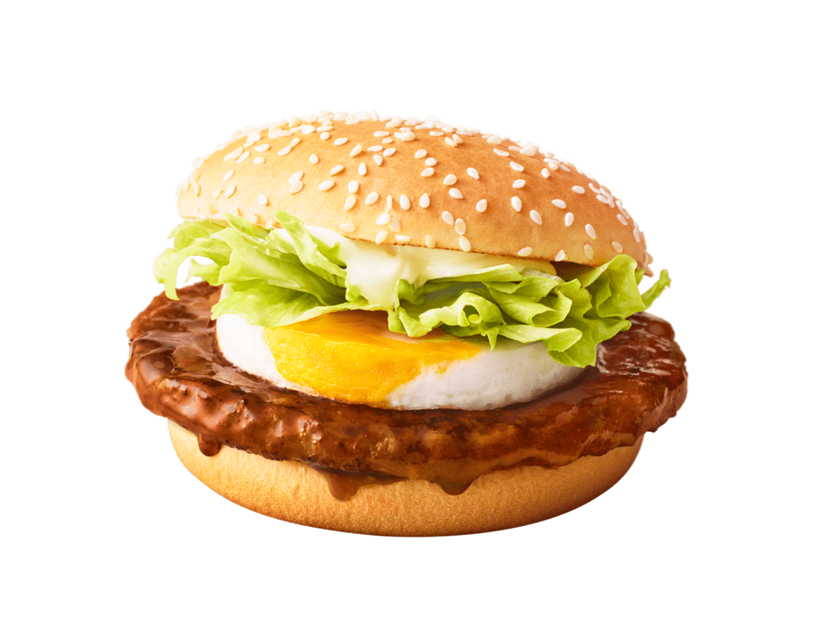 旨みに富んだポークパティに、しょうがとリンゴ、隠し味としてにんにくの風味を加えたてりやきソースを絡めて、さらに、ぷるぷるたまご、シャキシャキレタスを乗せて、たっぷりのスイートレモンソースをプラス。