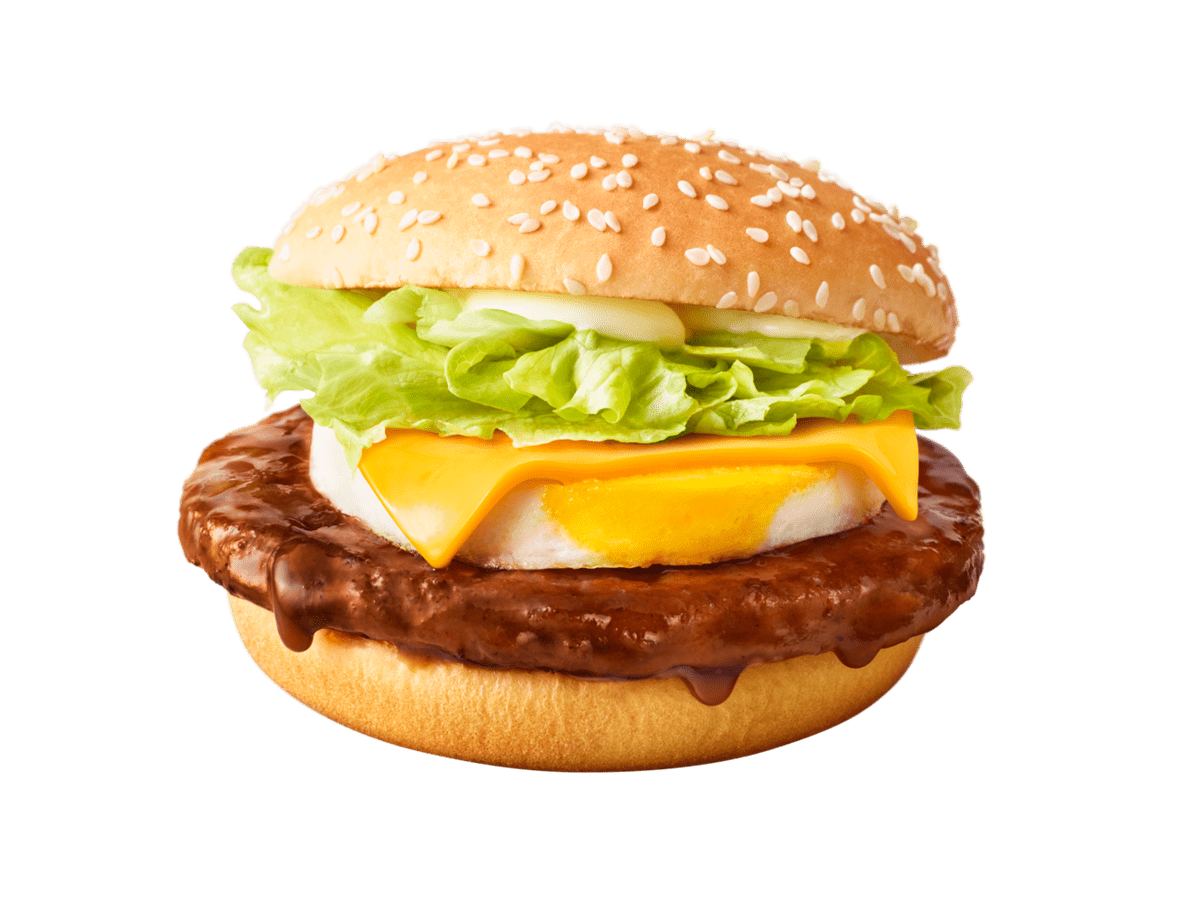 旨みたっぷりのポークパティに、にんにく風味が隠し味のてりやきソースを絡め、ぷるぷるたまご、シャキシャキレタスを乗せ、さらにクリーミーなチェダーチーズ、スイートレモンソースを加えて香ばしいゴマ付きバンズでサンド。
