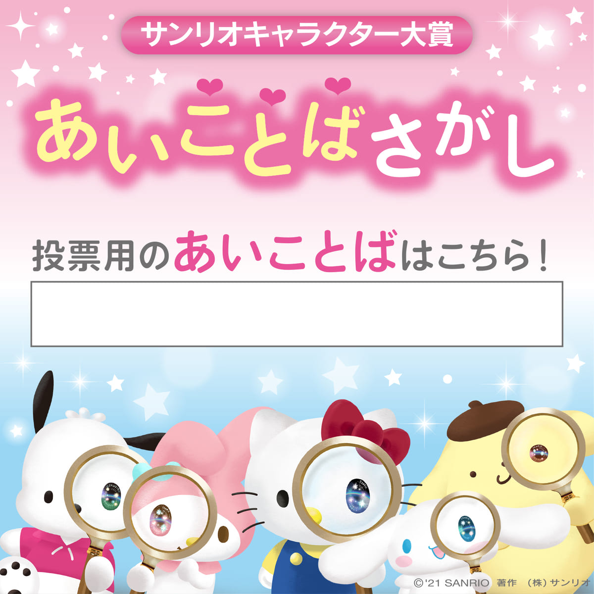 また、サンリオの会員サービス「Sanrio+(サンリオプラス)」の会員限定で「あいことばさがし」と「まいにち投票スタンプ」で入手できる「投票チケット」を使うことで、サンリオキャラク