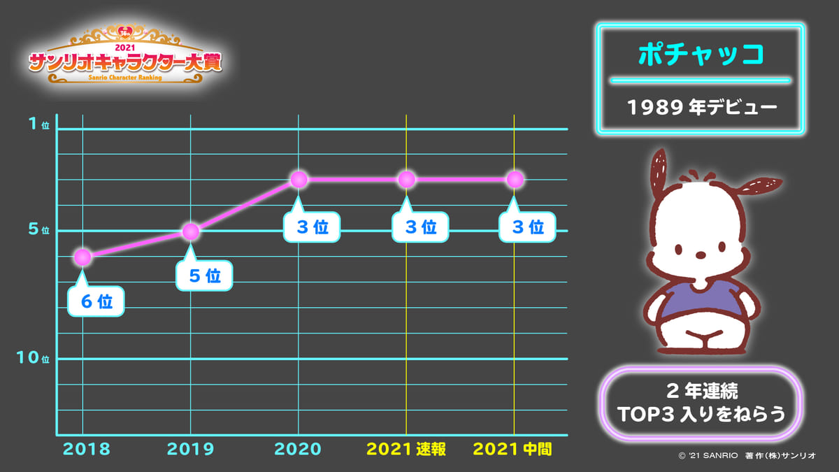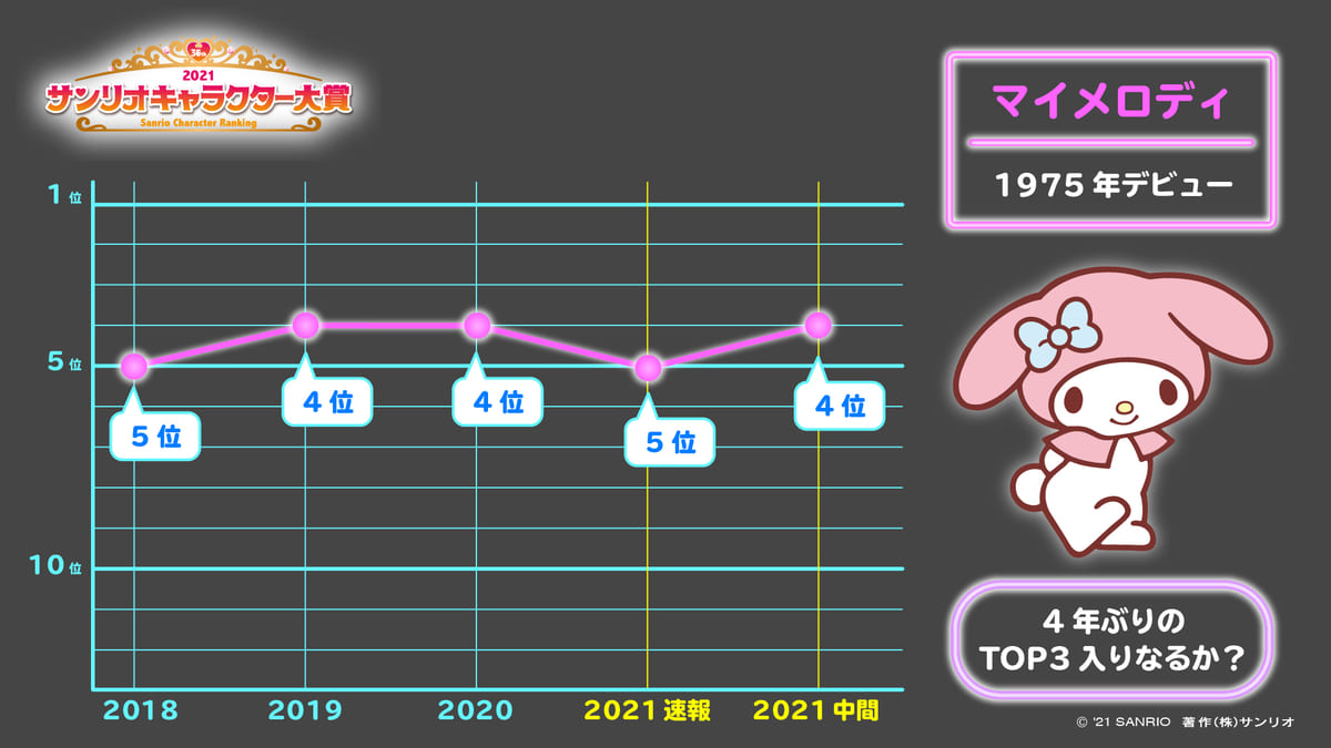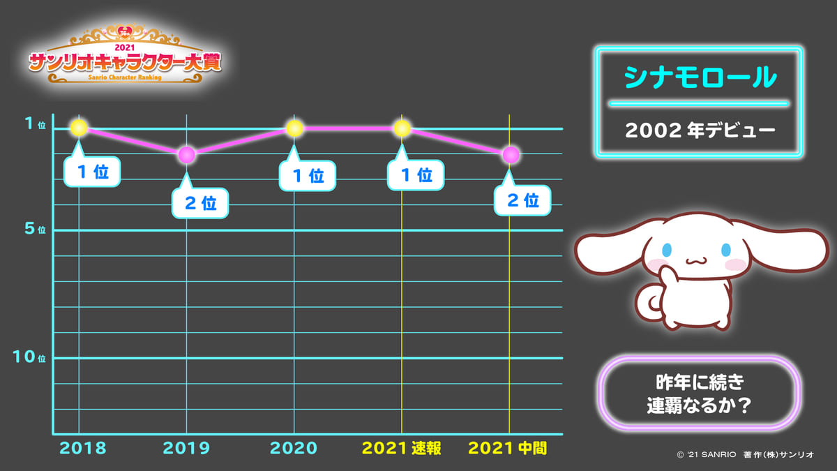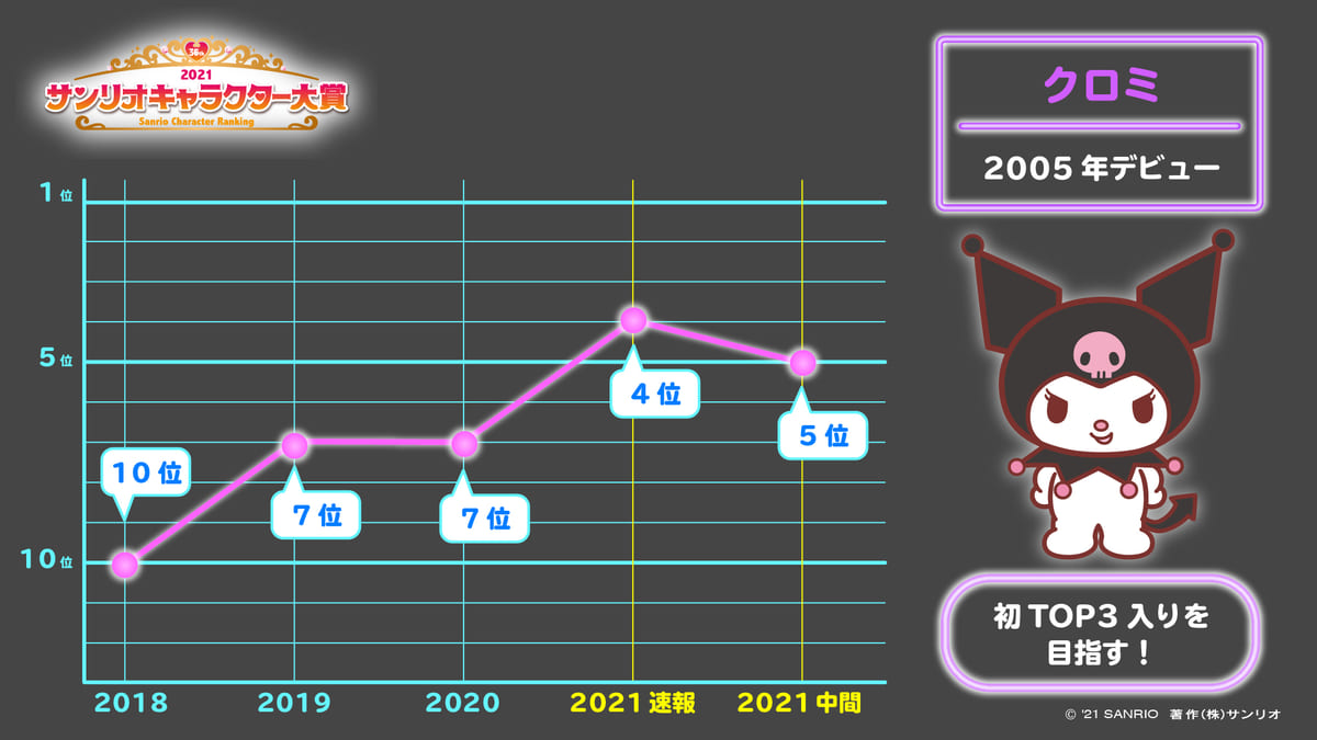 2021年は、最大のライバル「マイメロディ」を抑えて初のTOP3入りとなるでしょうか!?