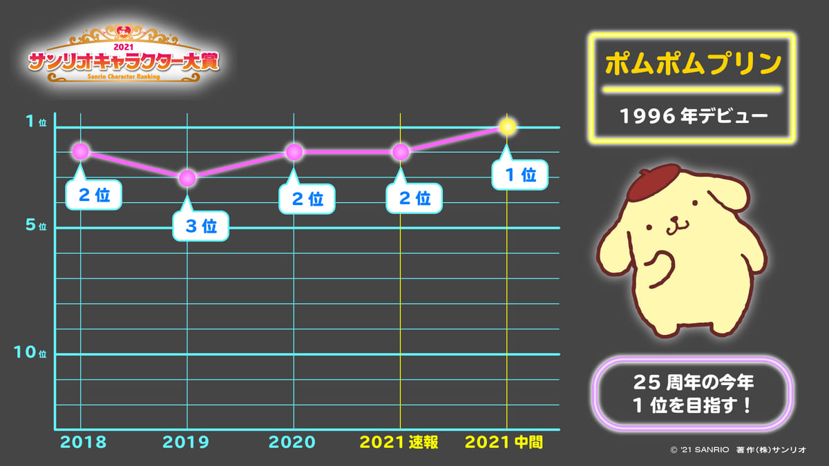 それとも2021年は、誕生から25周年を迎えた「ポムポムプリン」が5年ぶりの1位に輝くのでしょうか?