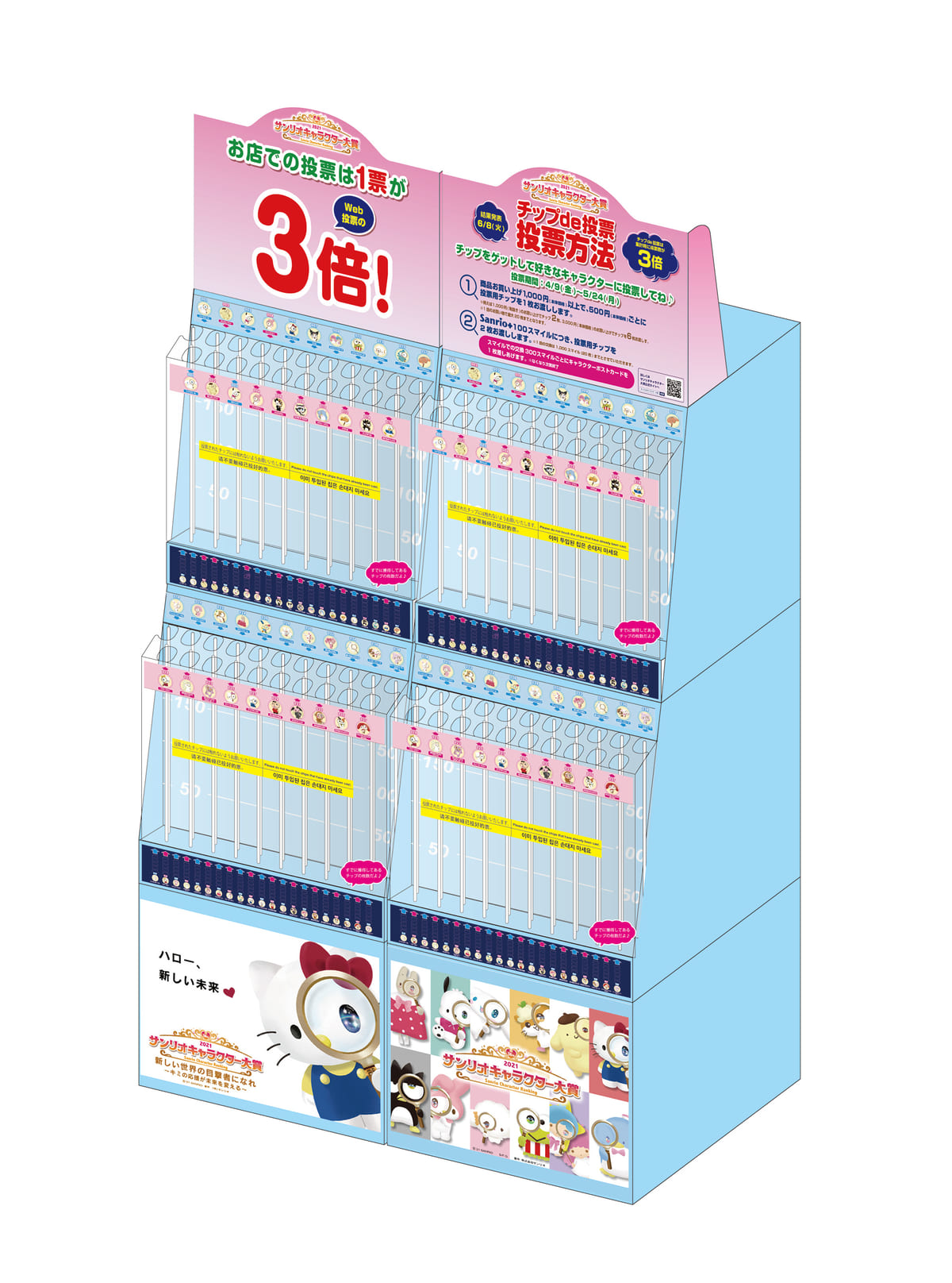 サンリオショップで税込み1,100円以上の購入をすると、550円(税込)ごとに1枚投票チップが配布されます(最大20枚まで)。