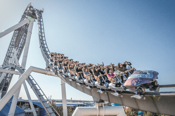 お気に入りのBGMを選んで、乗車中に聴きながらコースター体験を楽しめる、オープン以来パークで大人気のアトラクション「ハリウッド・ドリーム・ザ・ライド」